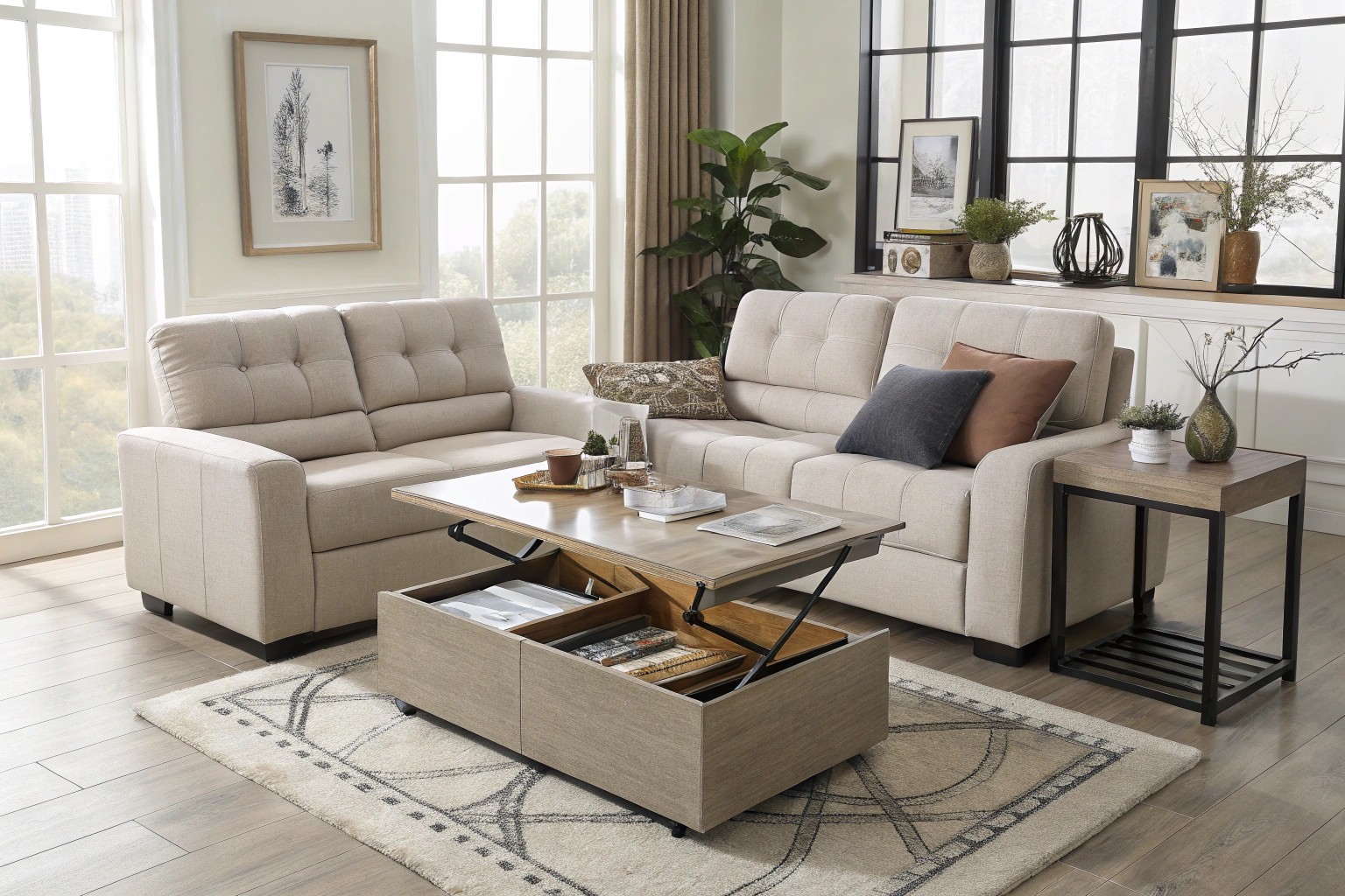 - Coffee-to-dining tables that adjust in height and sometimes width